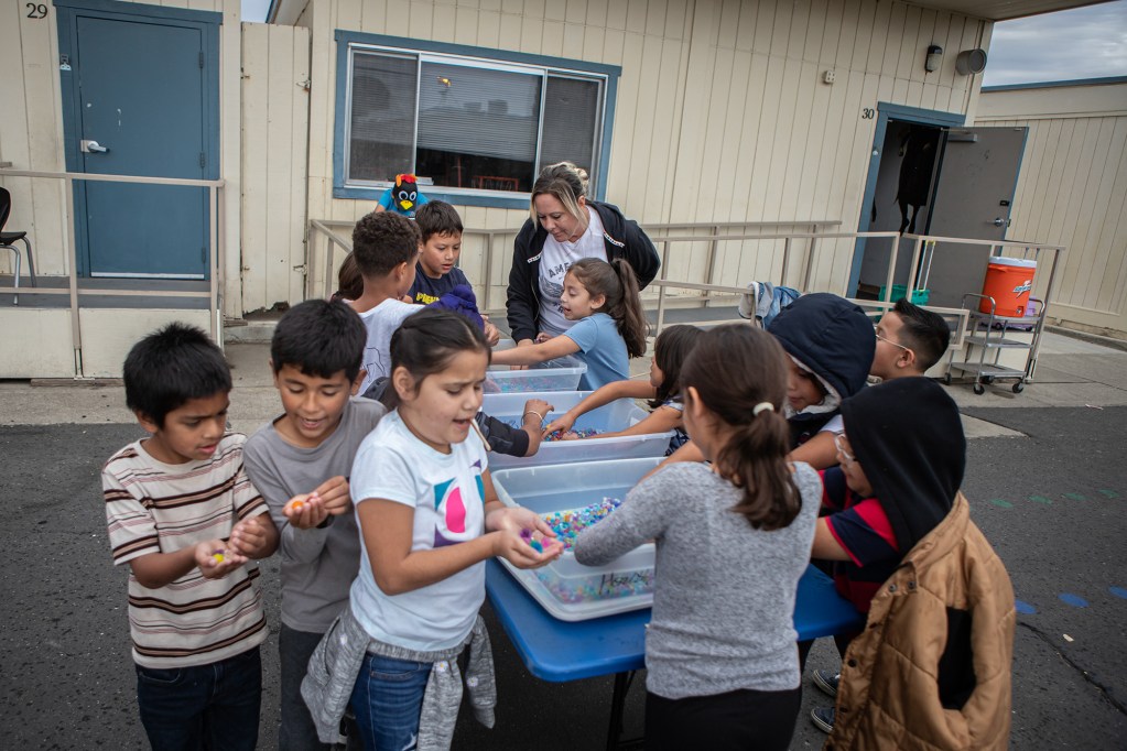 Students being taught a science lesson outside of the classroom at the Keyes Elementary School in Keyes on Nov. 15, 2023. Photo by Larry Valenzuela, CalMatters/CatchLight Local